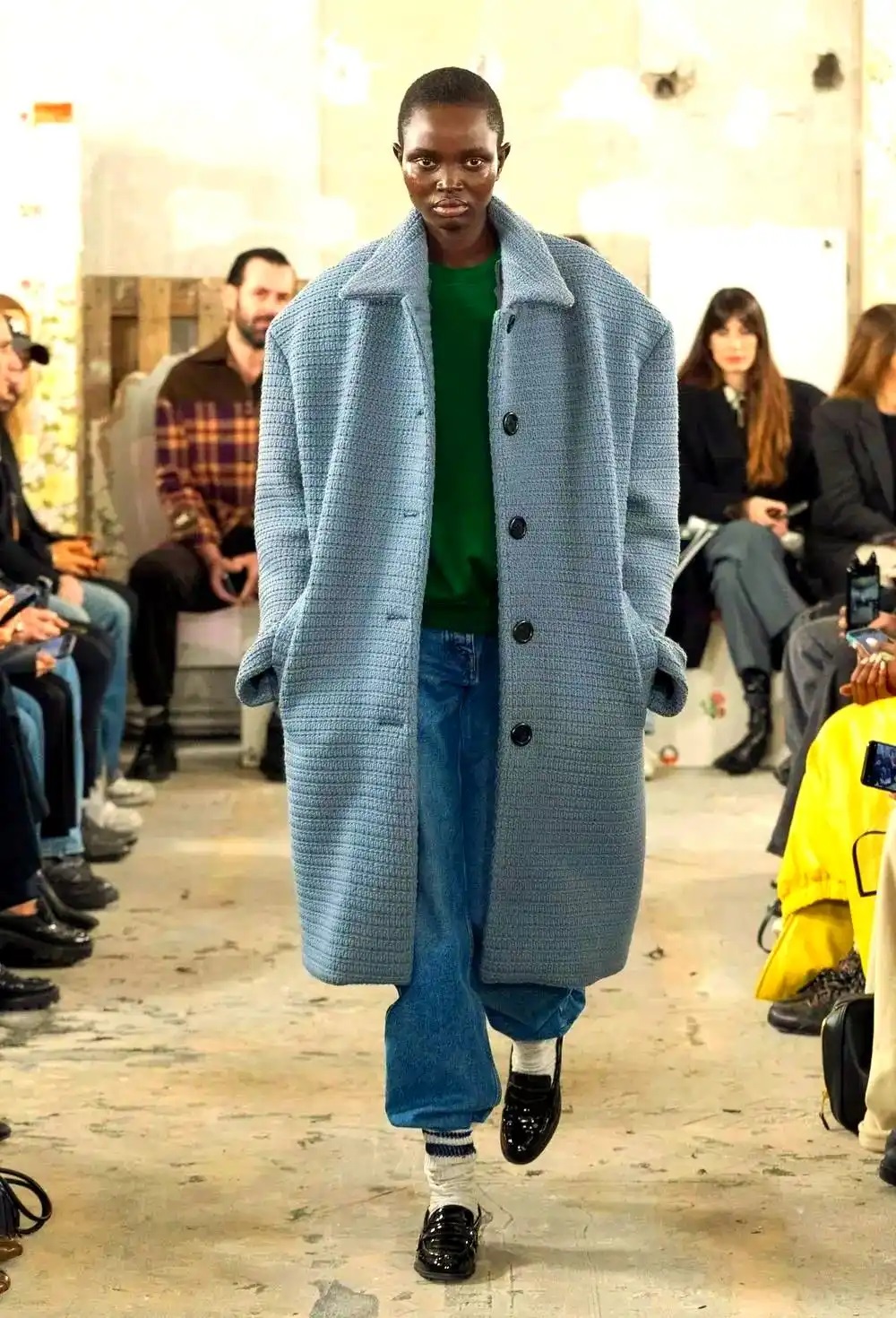 在2025/26秋冬時裝周上,牛仔元素實(shí)現(xiàn)視覺與觸覺的雙重突破。通過纖維混紡的創(chuàng)新,設(shè)計(jì)師不僅在視覺上帶來了全新的體驗(yàn),更讓穿著者感受到前所未有的舒適與質(zhì)感。從T臺上走下來的每一套造型,都讓人忍不住伸手去感受那不一樣的觸感與視覺沖擊。這種突破不僅停留在表面,更深入到穿著者的內(nèi)心,帶來了一場關(guān)于時尚的全新體驗(yàn)。